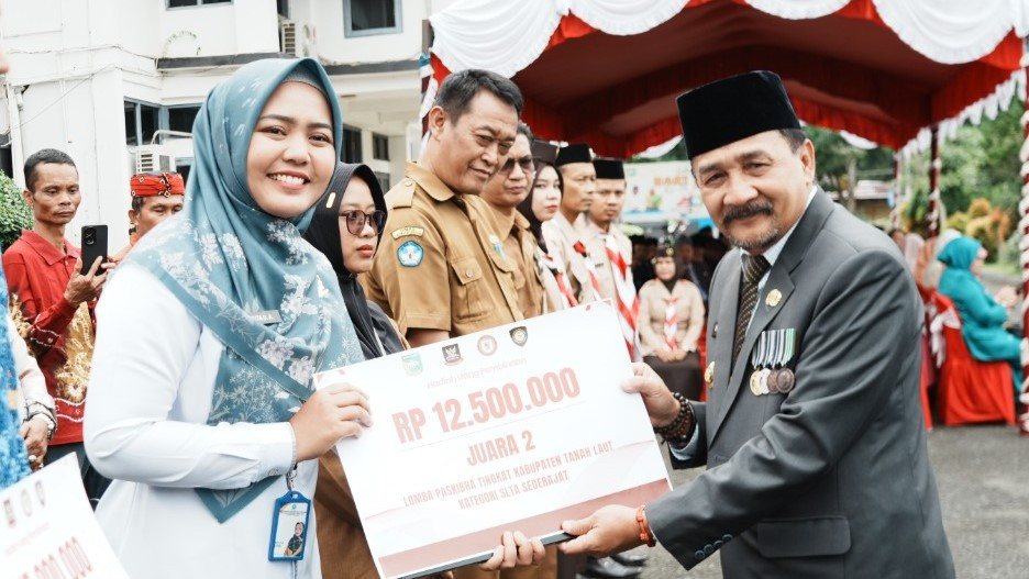 Pj. Bupati Kab. Tanah Laut, H. Syamsir Rahman, serahkan tropi dan penghargaan lomba paskibra tingkat SLTA, Kemah Bela Negara gelaran Budaya, disaksikan oleh unsur Forkopimda Tala bersama jajaran terkait. Penyerahan penghargaan ini merupakan bagian dari rangkaian kegiatan dalam memperingati Hari Jadi Kabupaten Tanah Laut ke-59.