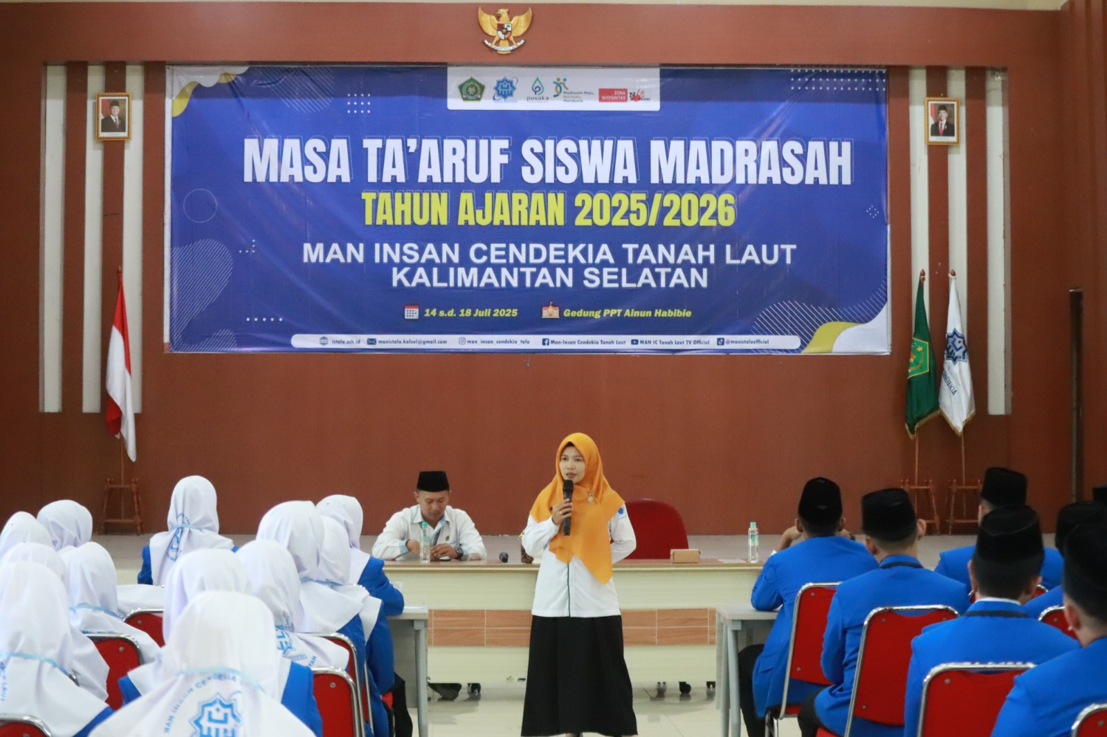 Guru Bimbingan Konseling (BK) Madrasah Aliyah Negeri Insan Cendekia Tanah Laut (MAN ICT), Munawarah memaparkan materi tentang pengenalan "Berdamai Dengan Problematika (Persepektif Kehidupan dan Pembelajaran)" kepada siswa kelas X Generai 10 MAN ICT dalam kegiatan Masa Taaruf Siswa Madrasah (Matsama) Tahun Ajaran 2025/2026 yang dipandu oleh Muhammad Ihsan Alfian. Bertempat di PPT Ainun Habibie, pada hari Senin, 14 Juli 2025.