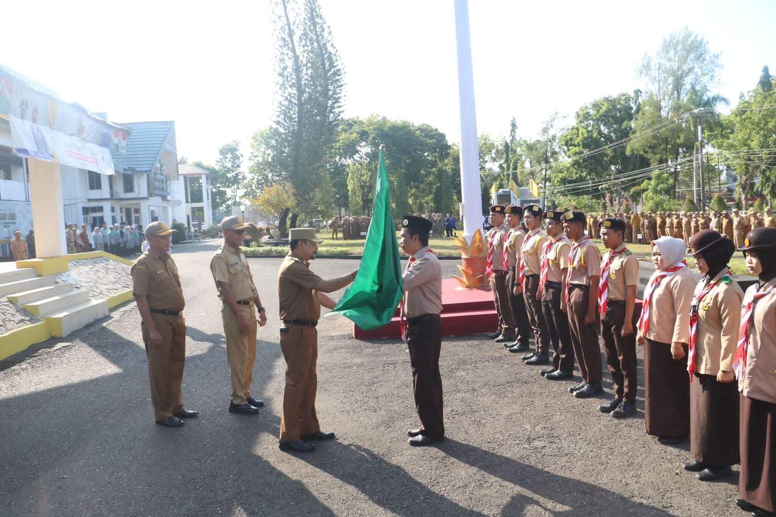 Tanah Laut (MAN ICT). PJ Bupati, Syamsir Rahman didampingi oleh Ketua Kwartir Cabang Tanah Laut, Dahnial Kifli dan Ketua Saka Kalpataru Kabupaten Tanah Laut, Zainal Abidin secara resmi melepas peserta kegiatan Perkemahan Bakti Saka Kaltaparu dan Saka Wanabakti (Pertikawan) Regional Kalimantan Selatan 2023, empat orang di antaranya merupakan siswa Madrasah Aliyah Negeri Insan Cendekia Tanah Laut (MAN ICT), Senin (06/11/2023) di Kantor Bupati Tanah Laut
